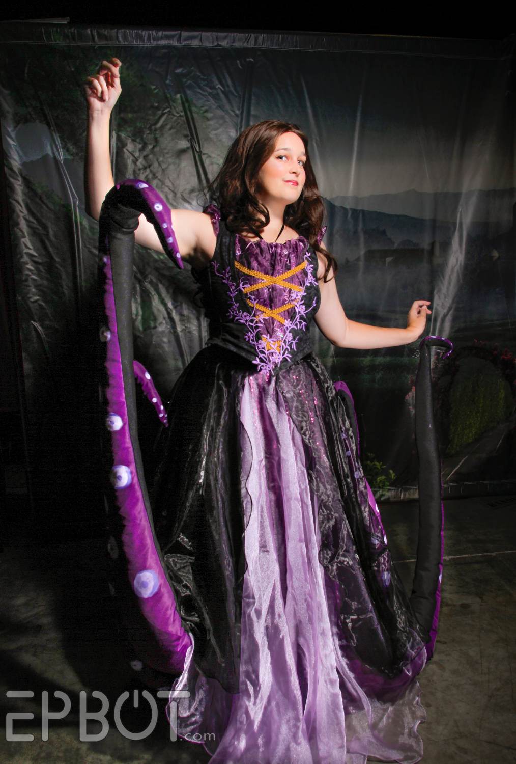 She standing in front of a photo backdrop, but of course our flash makes it look like trash bags behind her, ha. Isn't this a great effect with the tentacles, though?? Love it.